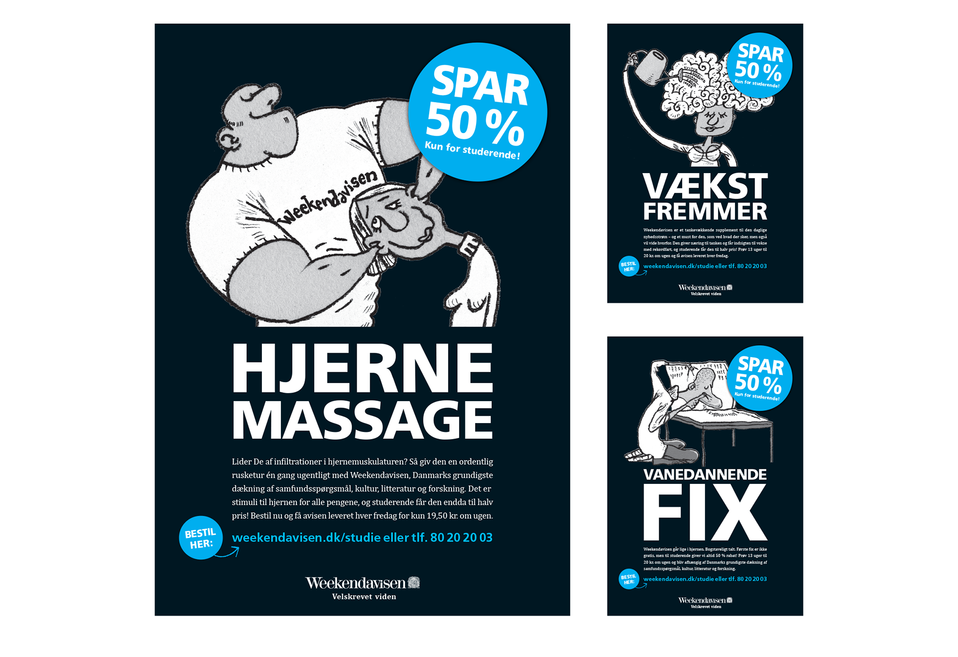Plakater og annoncer for Weekendavisen. Illustrationer af Gitte Skov: